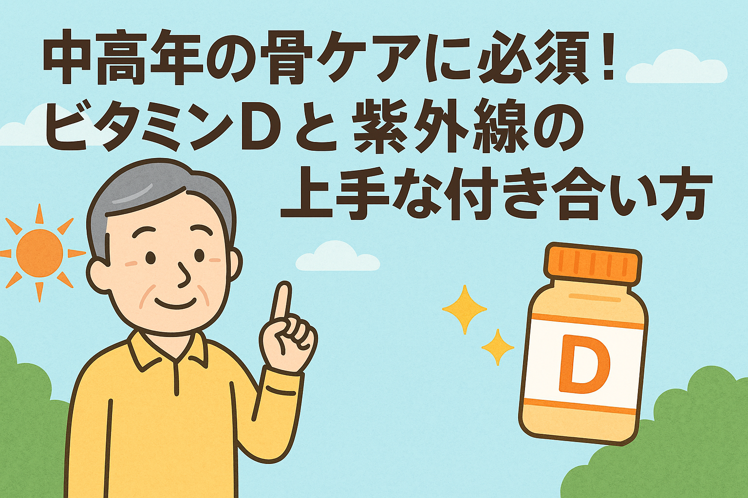 はじめに40代、50代を迎えると、骨の健康が気になり始める方が多いのではないでしょうか。骨がもろくなると骨折のリスクも高まり、日常生活にも支障が出ることがあります。骨を強くする大切な栄養素の一つがビタミンDですが、そのビタミンDは実は紫外線...
