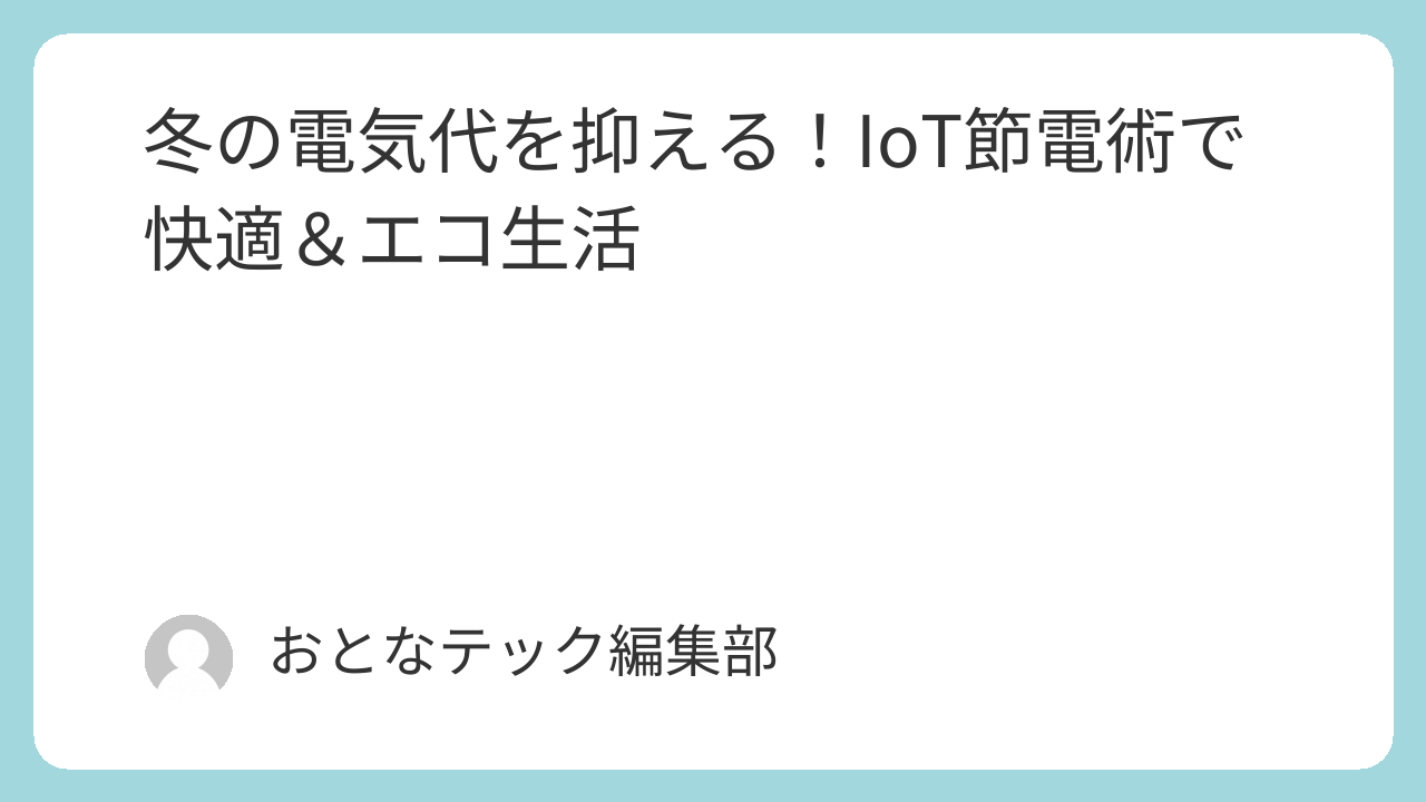 この冬は、ぜひIoT節電ガジェットを取り入れて、快適でエコな生活を始めましょう。